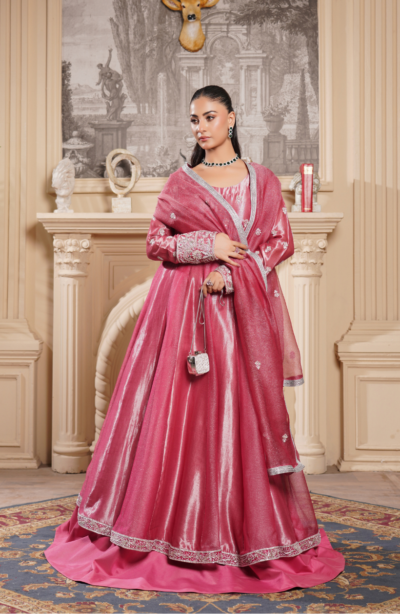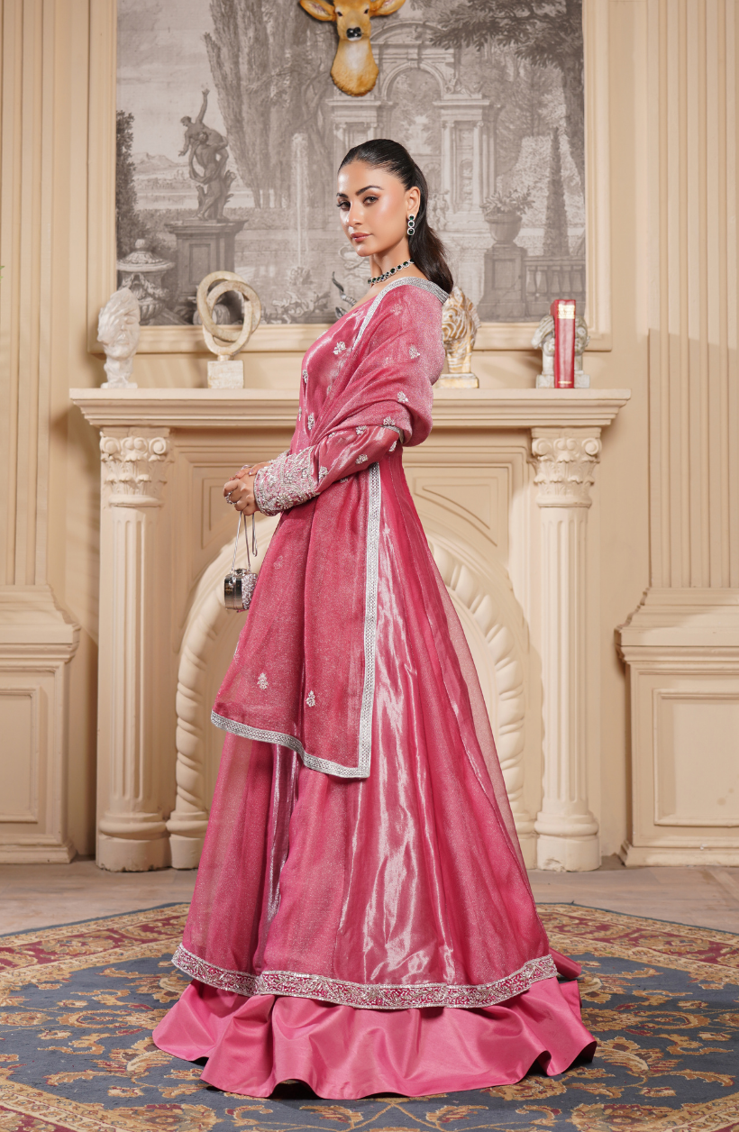 Pink Spun Zari Maxi Set with Resham & Tilla Hand Work