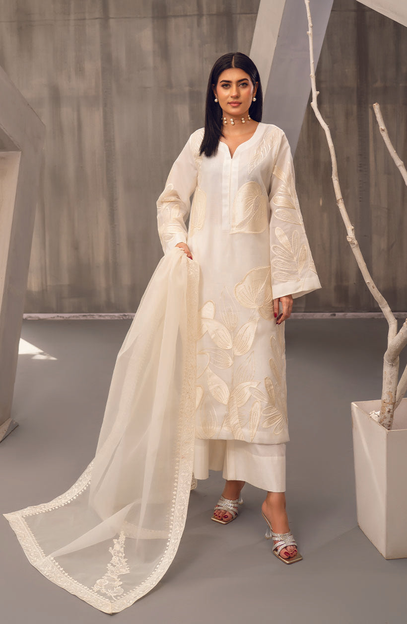 Buy now, wear forever. The White Raya Kurta by Tahira Meer is for seasonal versatility. Crafted from premium cora cotton, this kurta features delicate white-on-white leaf embroidery, creating a sophisticated and breathable look for warm-weather style across the USA.