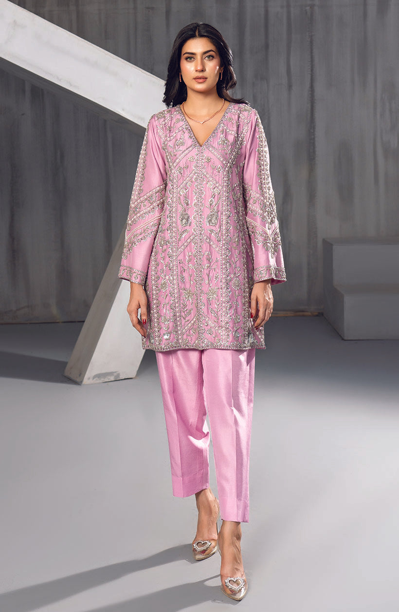 Short Raya: Lilac Pink Pure Rawsilk Embroidered Set – USA